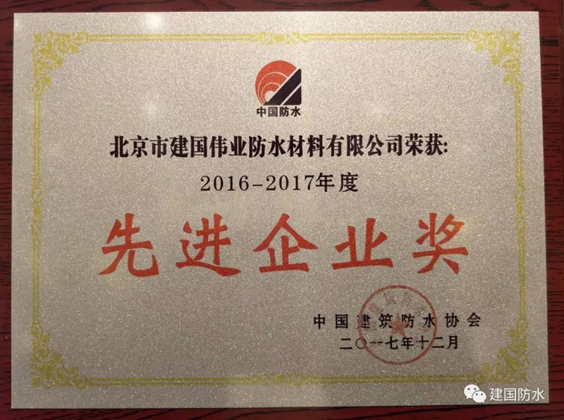 建國偉業(yè)集團(tuán)董事長李勇先生帶隊參加本次會議。會議中建國偉業(yè)集團(tuán)憑借自身實力,榮獲“2016-2017年建筑防水行業(yè)先進(jìn)企業(yè)”稱號。